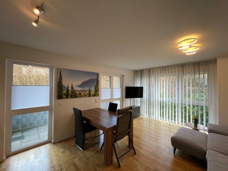 Die 2-Zimmer-Wohnung im 1. OG eines sehr gepflegten MFH, BJ 2018, mit Aufzug und Tiefgarage. Vollständig mit hochwertigen Markenmöbeln und Elektrogeräten ausgestattet. Ohne Umzugsstress - Einziehen und Wohlfühlen.
