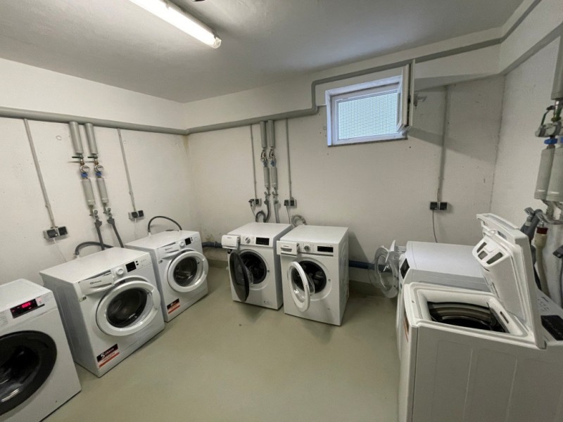 Helles Wohn-/Esszimmer mit Parkettboden, Schlafzimmer, weiteres Zimmer für Büro/Gäste, moderne Einbauküche, Tageslichtbadezimmer mit Wanne, Abstellkammer. Zur Wohnung gehören ein Kellerraum sowie ein Tiefgaragenstellplatz. Ein gemeinschaftlich genutzter Wasch-/Trockenraum und Platz für Fahrräder befindet sich im Untergeschoss des Wohnhauses.