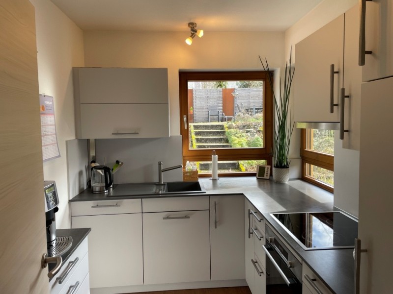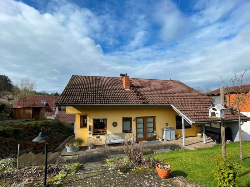 Massiv erstelltes Einfamilien-Wohlfühlhaus, BJ 1990, mit vermieteter ELW, 1.232 m² Grdst., darauf Doppelgarage u. Doppelcarport (für Wohnmobile geeignet). Liebevoll angelegter Garten mit Terrassen u. Freisitzen. Naturnah, mit Blick in die Rebberge.
