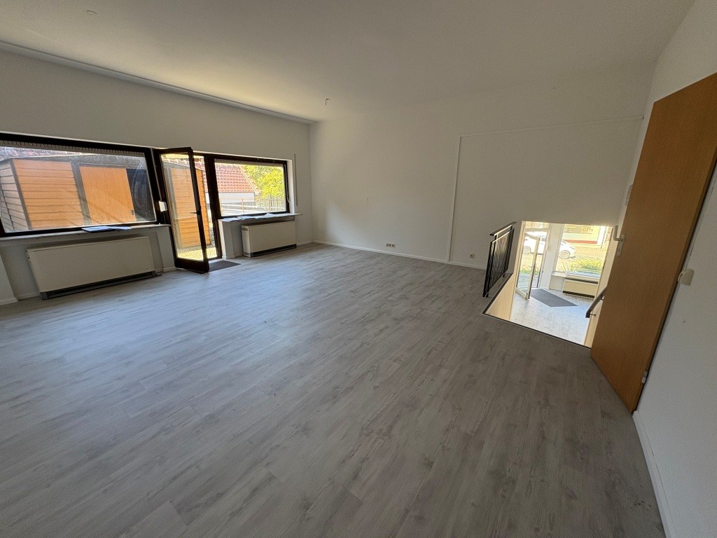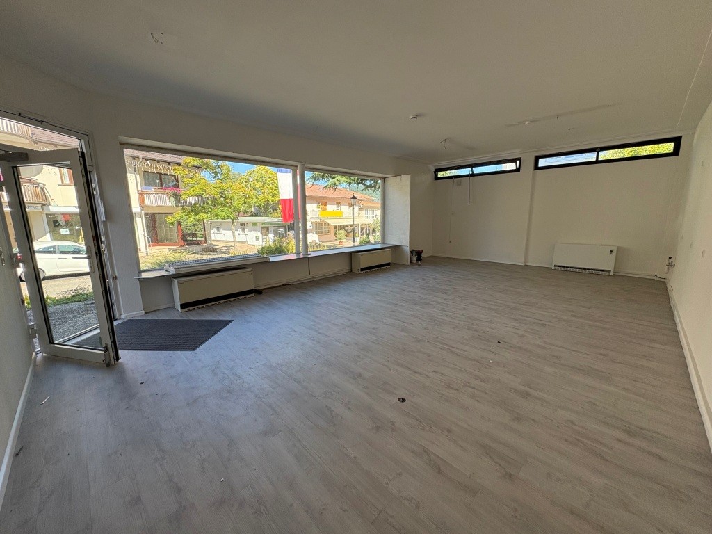 Die Gewerbeeinheit im Erdgeschoss mit Verkaufsraum. Im Obergeschoss ein weiterer Raum, Terrasse, Durchgangszimmer, Flur, Toilette, Küche/Gemeinschaftsraum.