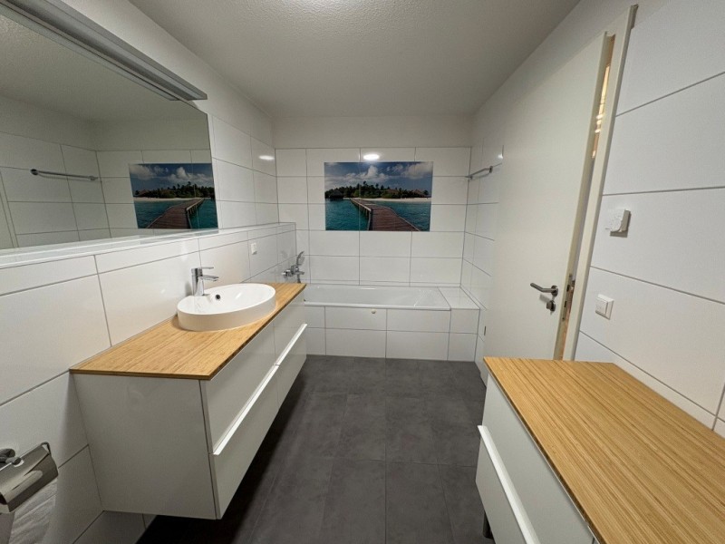 Etwa 140 m² Wohnfläche im 1. OG, auf 5 ½ Zimmer, Loggia, 1 Bad mit Dusche, 1 Bad mit Wanne, Küche und Abstellkammer. Zwei Doppelparker in der Tiefgarage können für jeweils 15.000,- EUR zusätzlich erworben werden. Die Wohnung barrierearm und bereits freigestellt.