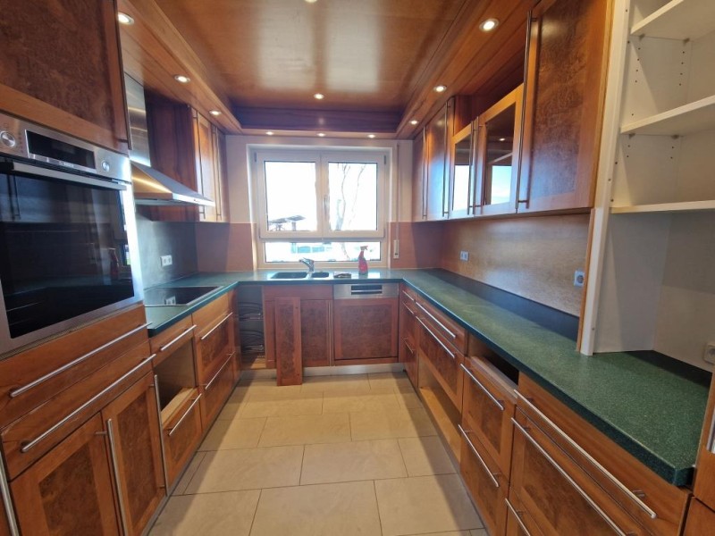 7 Zimmer, zwei Bäder, Wintergarten und Balkon. Vollholzeinbauküche, ein weiterer Raum hat Küchenanschlüsse.